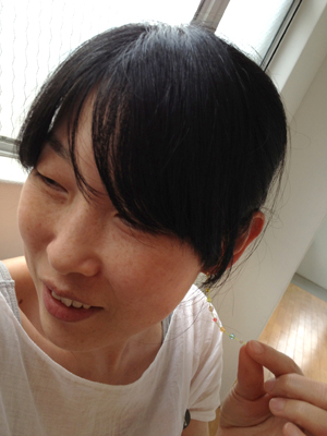このピアスの長いのが天井からつり下げてあって、そこに水が流れて、その陰を見る