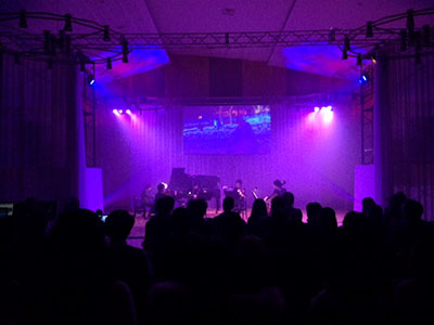 デジタルの映像とアナログの音楽が融合して、しかも16組くらい(もりだくさん)、いろいろな種類の若さあふれる音楽と映像が楽しかったです。ゲームでスマホからお客さんも参加する形式の演奏もあって、ほんと面白かった♪