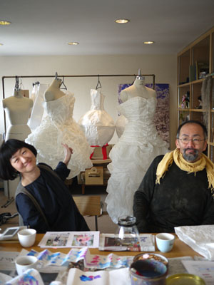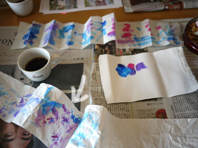 松田さんちで美濃和紙に試し描きしに行きついでに、