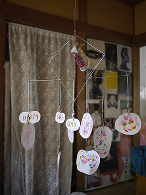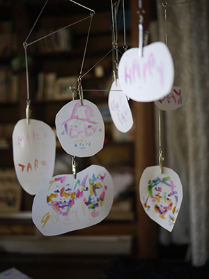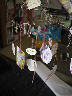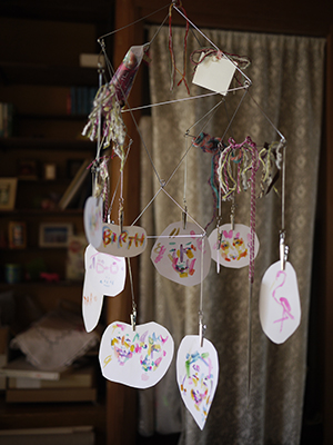 コルリでモビールの元を見つけて、いろいろつけてみました。