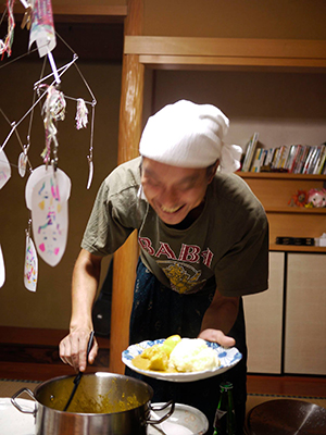 畑をやる為に松田家に住んでいる大橋くんが、カレーを。