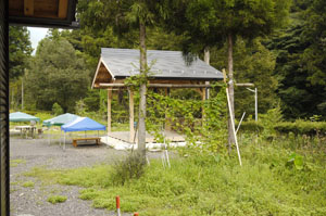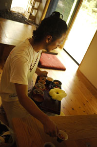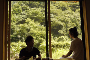 窓越しのこの緑を見ながらのご飯は、贅沢。