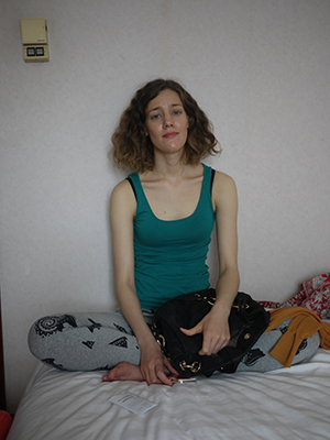 面白い格好で帰るチェルさん。