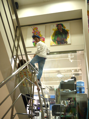 階段のところに展示したので、三脚も使えない場所があり、