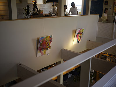 キャンドル等、いろいろなことをやっている加藤しんたろうくんと打合せがあったので、「じゃLUFFLE CAFEにしましょ」ということで、展示の最終日に集合したら、一緒に来てくれたしんたろうくんの彼女が、LUFFLE CAFEをプロデュースしている若園さんのいとこでした!!