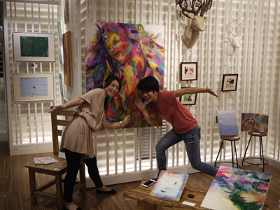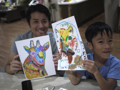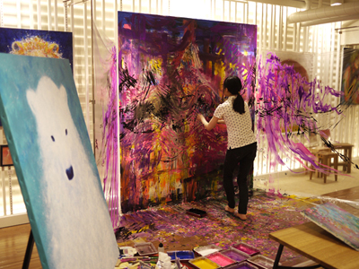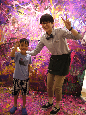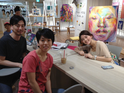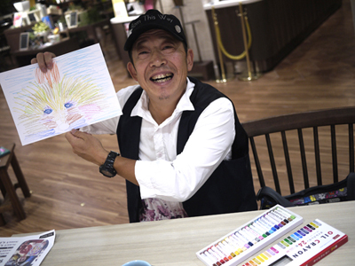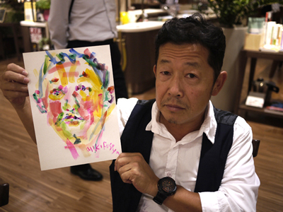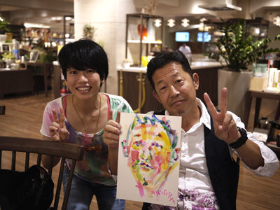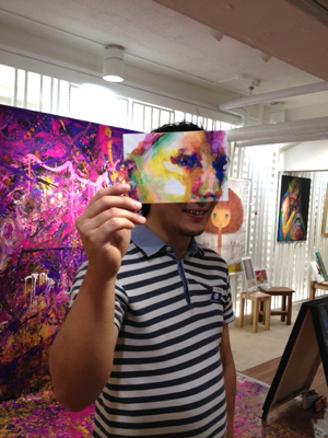 大島さん、ペイントしている風に写真を撮ってもらっていた。