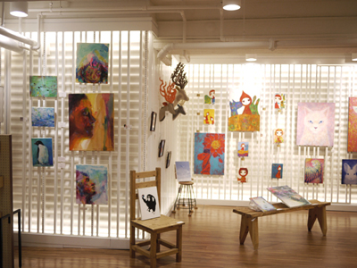 昔、OFFICEという名前のギャラリーバーで展示とライブペイントをさせてもらった店長さんの野島さんが、グラスを両手に呼んでくれてました。