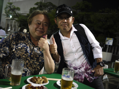 そして流れで、ウッチーさん&大島さんのオーバー50コンビと屋上のビアガーデンへ。
