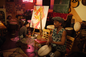 おしゃべりをしていたら、ならさんが太鼓を鳴らし始めたので、