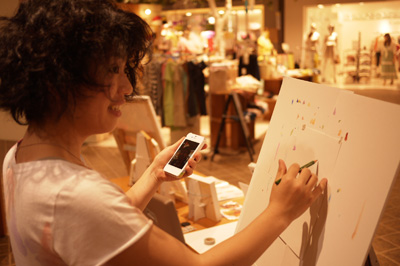 最終日アーティストが帰って撤去作業を向出さんとやってたら、少なくても2人は絵を描いて欲しい。と問い合わせがきました。