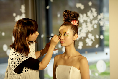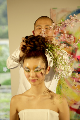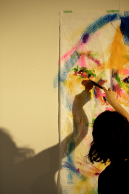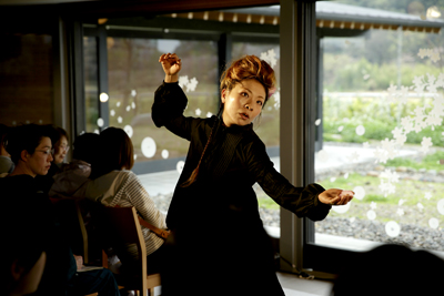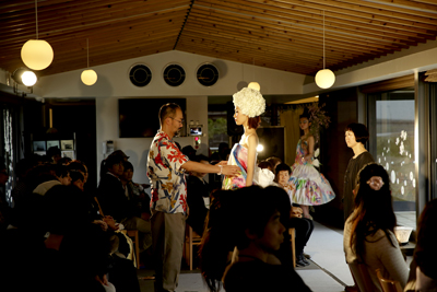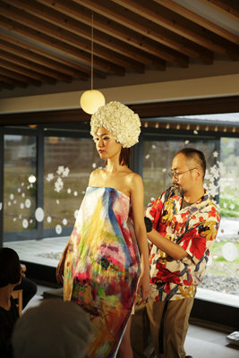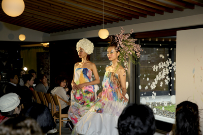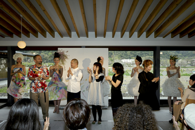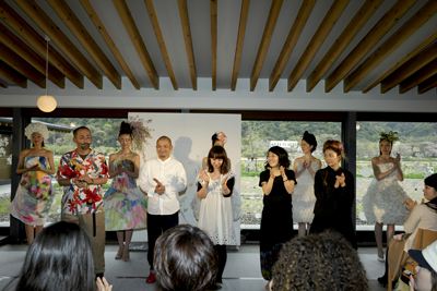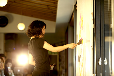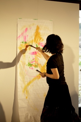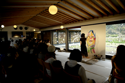モッカちゃんが出て行って歌って、松田さんが舞台に美濃和紙を貼って、