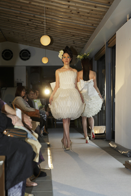 美濃和紙ドレス、繊細なので、スカートのところちょっと取れてしまいましたが。。