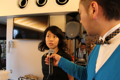 その後のパーティーで、とぼけた顔してインタビューを受けてました。
