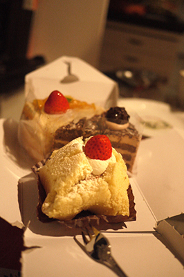 だだくさな2人でツンツン食べる。そして2人なのにケーキは3つ。