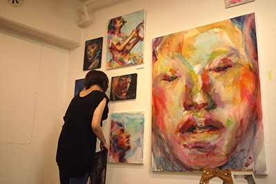 向かいの壁に関西弁の人が搬入してるな〜と思っていたら、キングコングの西野さんでした。絵も描くんですね。しっかりは見なかったけど、だいぶ上手そうでした。