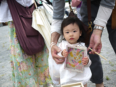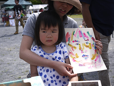 今年はお向かいに出店していたつみつみファーム いちごくんが、上手に笑顔を引き出してくれる♪