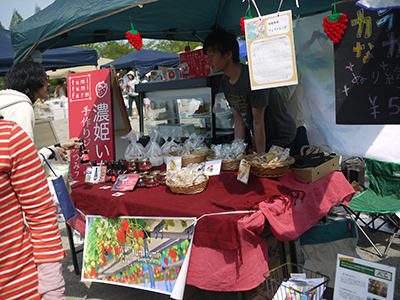 つみつみファームのいちごくんとスタッフのゆみちゃん。
