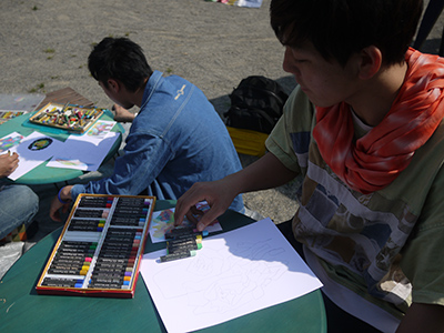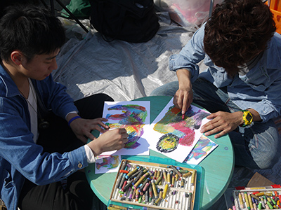 横へ倣えの日本の教育に異を唱える三人の、お手本いらずのぬり絵が完成!!