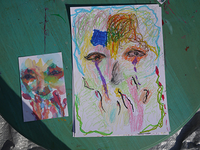 テープでとめて描いていたので、外す時「ちょっとペリッってなっちゃったごめんね〜」と言ったら、「全然気にしないよ〜」って間髪入れずに答えてくれました。