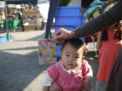 お向かいのまっちんアップリケを撮ろうとしたら、鼻ほじっている子どもが撮れました。
