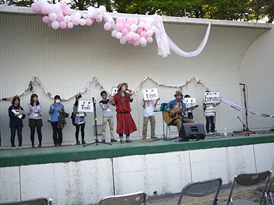 ジュンコさんが挨拶をしていたのを遠目に撮る。ちょっと遅かったな。