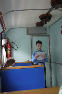働く子ども達。運行までの間、教室みたいなところでなんかディスカッションしてました。何しゃべっていたのかは分かりませんが、けっこう盛り上がっていた。