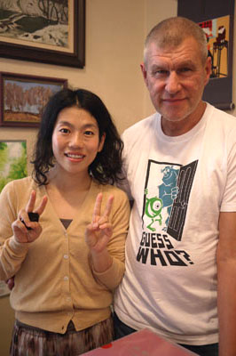 その後、日本の岩橋さんの雑貨屋さんでも働いてたことがあるというニコニコ美人も来て、絵を見てテンション上がってたので、楽しくみんなでおしゃべり♪