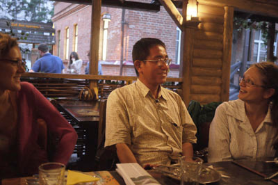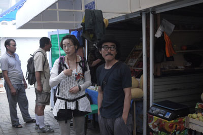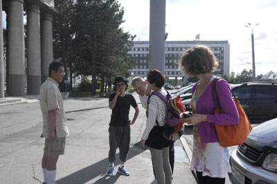行きは、高橋夫婦と一緒の飛行機だったので、ロシアのグッズを取り扱っている岩橋さん(一番左)とサーシャ(ユタカ氏の右)が迎えにきてくれました。岩橋さんのたたずまいが、なんか面白いような。。