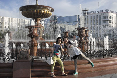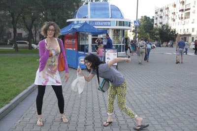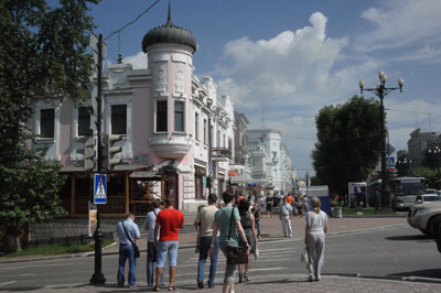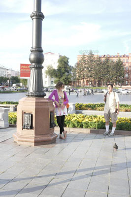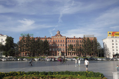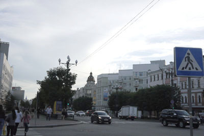 レーニン広場付近。夜行バスで成田まで行って、朝の飛行機でハバロフスクに着いたので、疲れてちょっとテンションがおかしくなりました。でも楽しい。