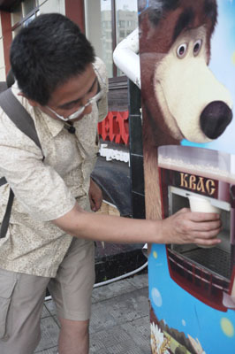 クワスというポピュラーな飲み物とレモンスカッシュみたいなのの自販機。
