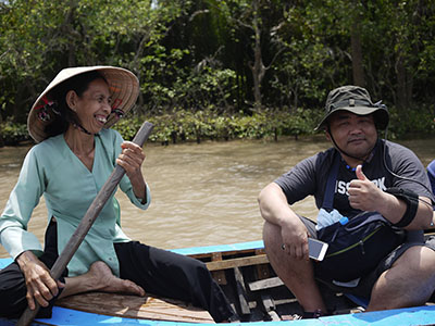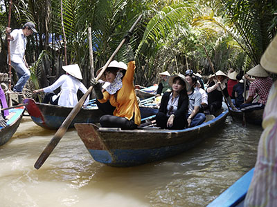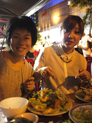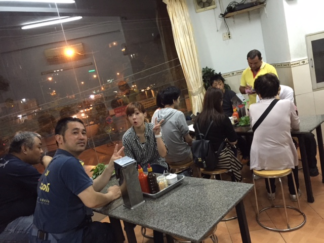 メコン川下りの所まで、ホーチミンから往復4時間くらい車にのって、疲れちゃったとはいえ、シャワーを浴びて、ごはんに行く。旅行って楽しい♪