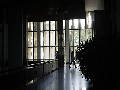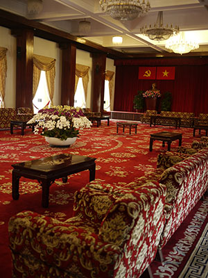 この部屋の赤は、相手を威嚇するための・・・とか。