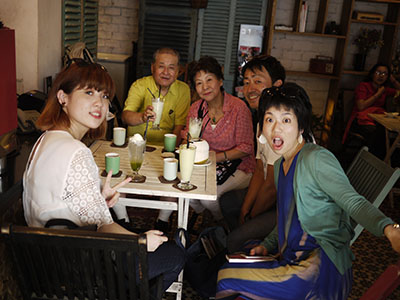 お昼くらいにベンタイン市場に降ろしてもらって、市場を散策しよう!という予定でしたが、暑いし、すぐ疲れて、おしゃれカフェへ。
