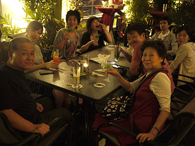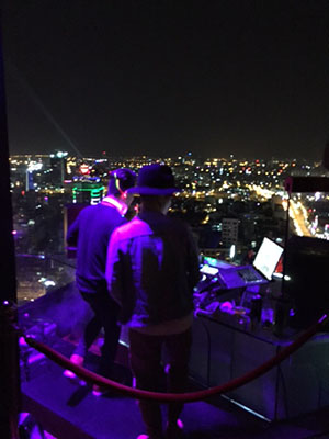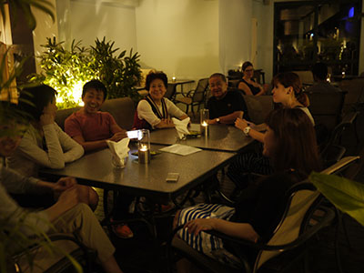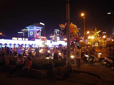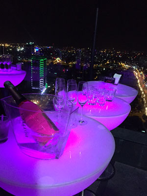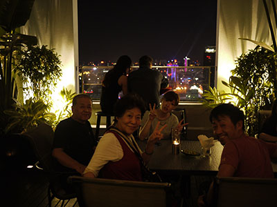 帰りにみんなコンビニへ寄っていくというので、社長と社長の両親とホテルに帰ると思ったら、ガイドさんが教えてくれた、ホテルの隣の夜景が見られるバーに行ってみるぞ!!と社長が言いだしたので、従う。入場料 30万ベトナムドン。"スリーハンドレッド サウザンド ドン"、四人で"トゥウェルブ ハンドレッド・・・"と言っていたような感じでしたが、桁が大きい数字を英語で言われてもボーっとしてしまいますね。「USドルでは?」と聞いたら「ひとり15ドル」と言われたので、理解できた。よかった。