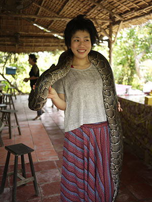 蛇を巻かせてくれました。だんだんかわいく思えてきた。