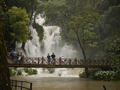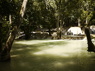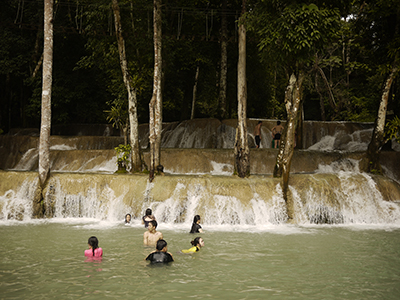 トゥクトゥクのおじさんに「人が集まったから、30000キープ(400円くらい)でクォンシーの滝に乗せてくけどどう?」と話しかけられて、じゃ行こっかなと行ったら、フランスっぽいカップルと、スペインぽいカップルと、私というロンリーな。