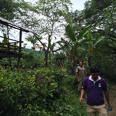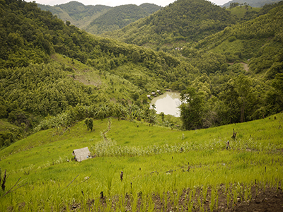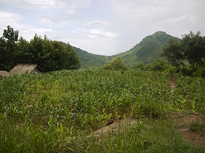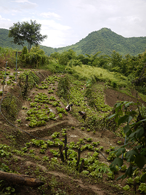 ほんとは滝にたどり着くはずらしいのですが(フランスカップルは着いたって言ってた)、見晴の良い畑に着く。