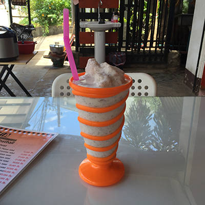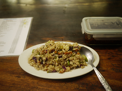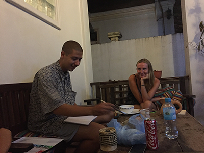 ごはん食べながら、宿までのタクシー(乗り合い)で一緒だった日本人の人を見つけて、「こんにちは〜」と言ってみる。
