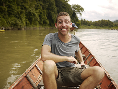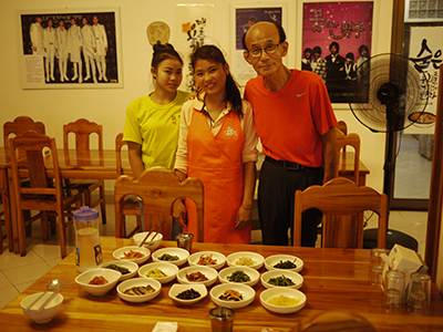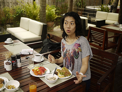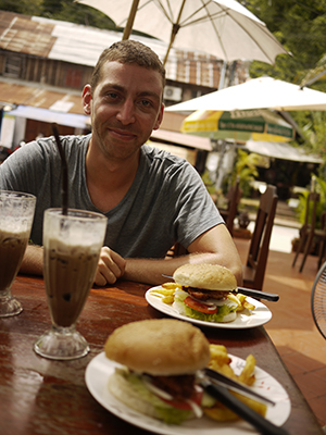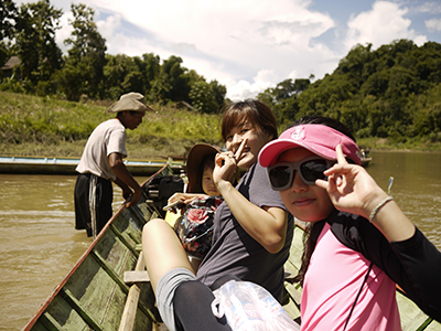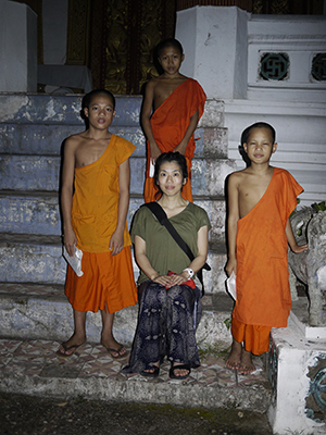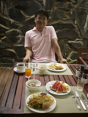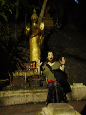 ラオスに着いて、空港からのタクシーで、タイのバーツ(お金)が使えたので、両替せずに宿まで行ったら、「宿代はラオスのキープかドルでしか払えないよ」と言われたけど、両替所がもう閉まっていて、ど〜しよ〜お腹も空いたし〜〜とさまよっていた時に、日本語で話しかけてくれた韓国人のリーさん。開いている両替所にも連れていってくれて、後日、滝に連れてってくれたり、ごはんをたべさせてくれたり、大変お世話になりました。