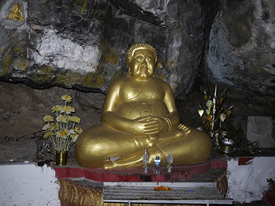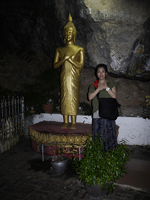 下りつつ、仏像を見る。ラオス男性、説明してくれる。