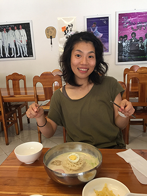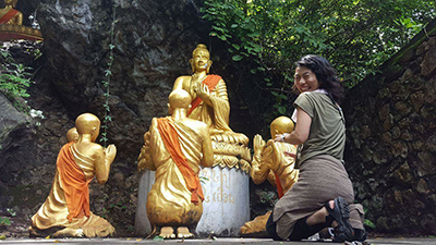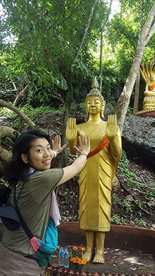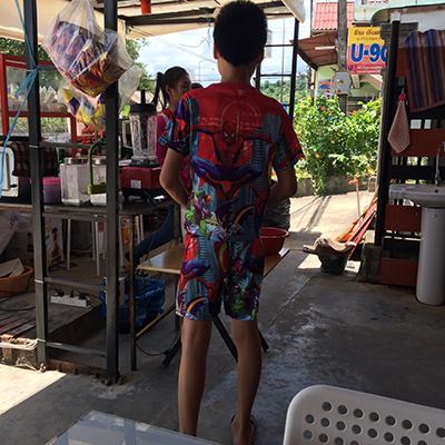 最初、チョップのポーズをしていたら、デニスが撮ってくれるスマホの画面をラオスのおばちゃんが見ていて、ポーズの指示が入り、おばちゃんの通りのポーズをしたら、よしっとひとつうなずいていた。
