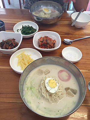 リーさんに大変お世話になったので、絵を描いて(昨日のブログのトップ)お店に渡しに行きつつランチ♪大豆を潰してスープにしてあるという韓国料理。