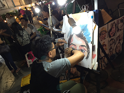 ナイトマーケットで、ペイントTシャツ描いてる人がいました♪