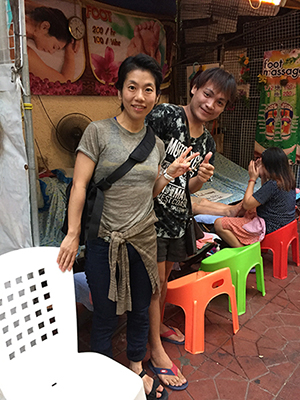 また船でカオサン通りまで行って、タイマッサージを受けて、カオサン通りの最後の方にあったアットホームっぽいお店で足マッサージ♪