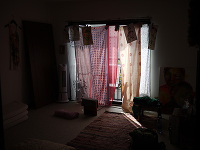 カーテン代わりのストールたち。