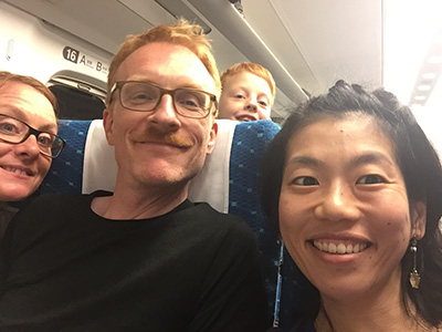 後ろの席に3人子どもがおり(”侍”と書いたTシャツを着ていた)、