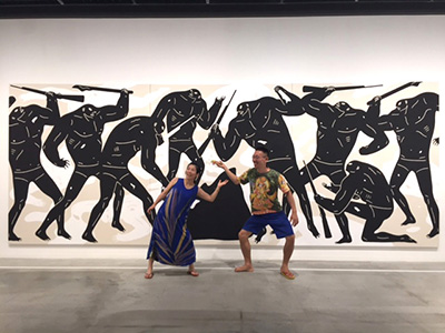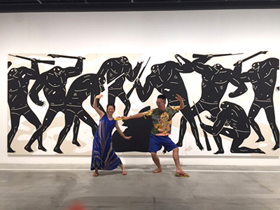 元ヘロイン中毒で、犯罪歴もあり、刑務所にも入ったことあるけど、アートの学校を4つ卒業して、今は3人子どもさんもみえて、ジェイジーとかセレブの家にも絵が飾られているアーティストさんの展示でした。スタイリッシュだけど、えぐい暴力が描かれてました。