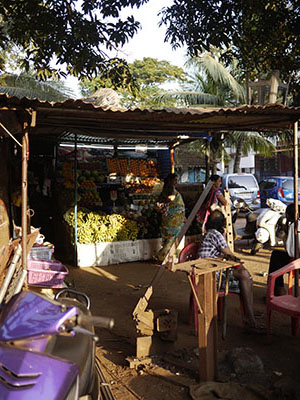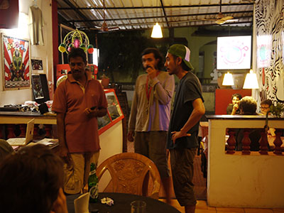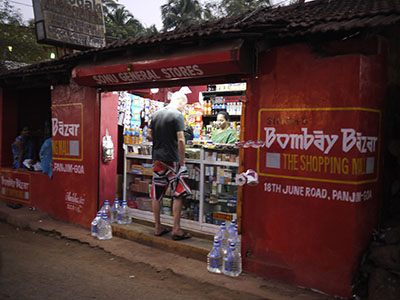 カシューナッツのお酒、Kaju隣のバーで買えるよ〜とアキラ兄さんが買いに行ってくれたのでついていく。みんな静かにテレビを見ながらお酒を飲んでいた。暗くてあまり見えない。その奥のお部屋にママが。Kajuのソーダ割りを作ってくれました。まさかの一杯10ルピー(20円くらい)とソーダ5ルピー♪