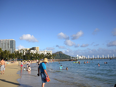 ホテルに到着してからの、ワイキキビーチ♪