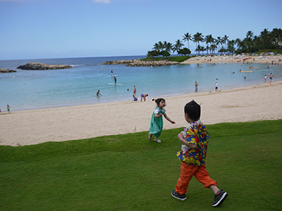 とにかくハワイの手のポーズは、やらなきゃいけない感じで。